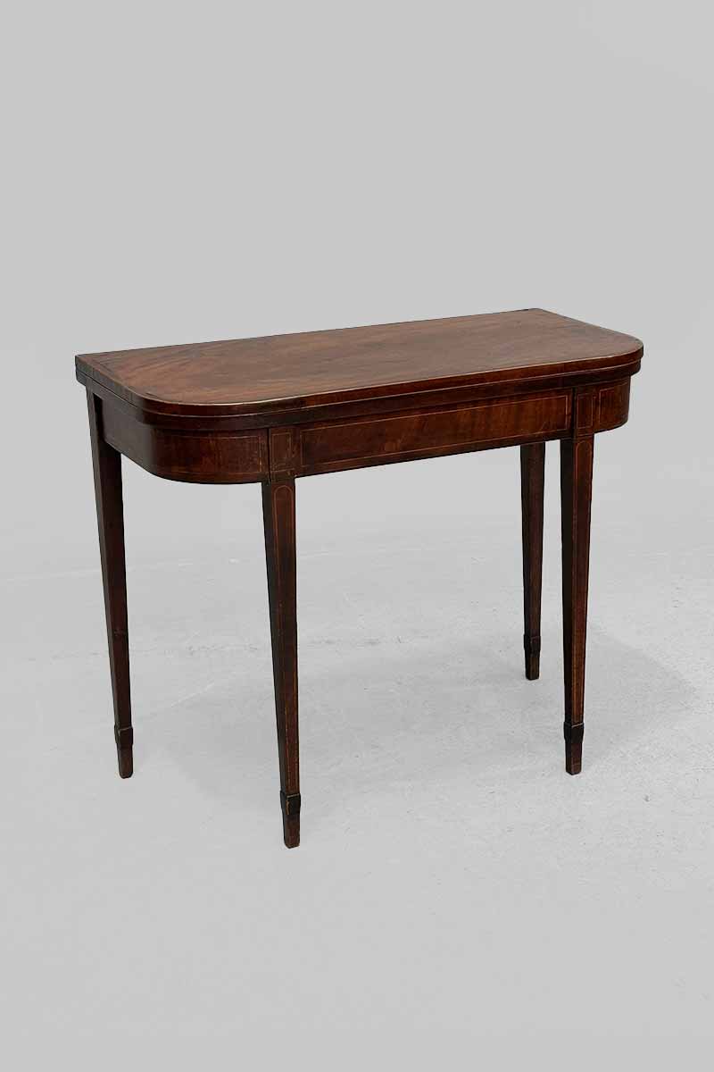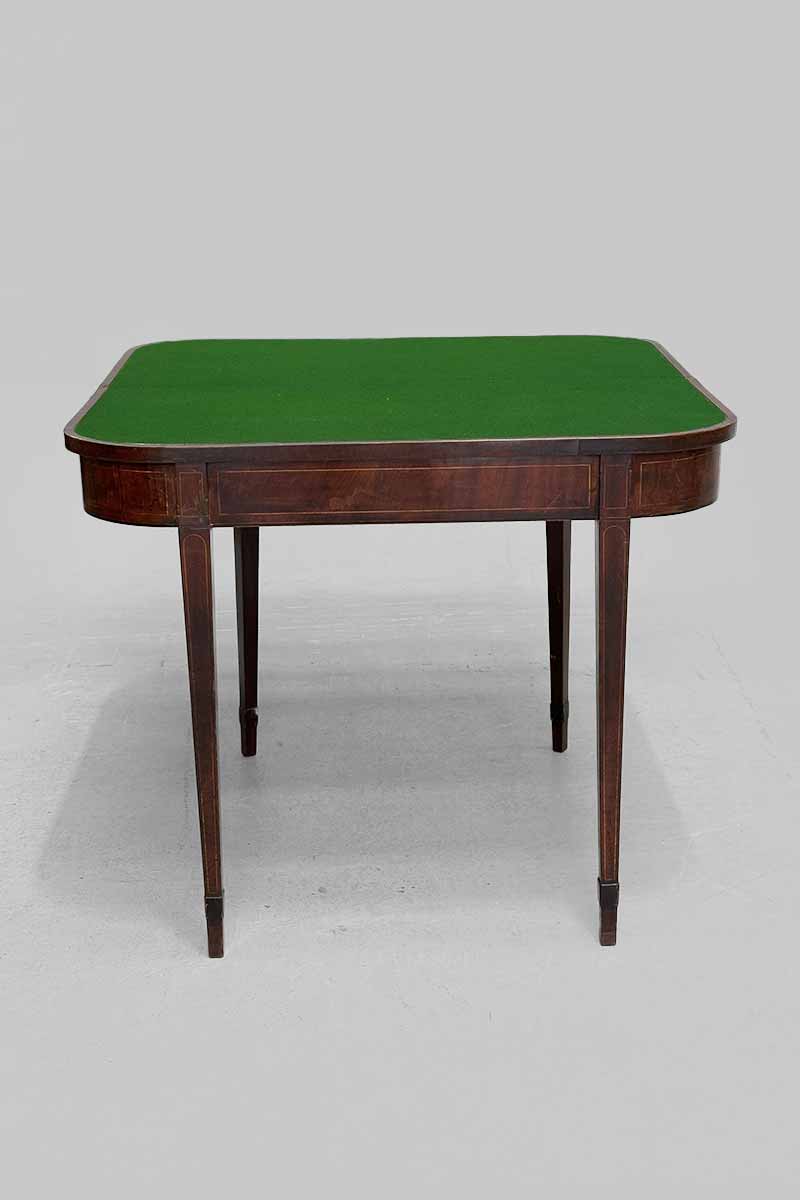 Mahogany Inlaid Fold Over Card Table with Green Baize Interior
