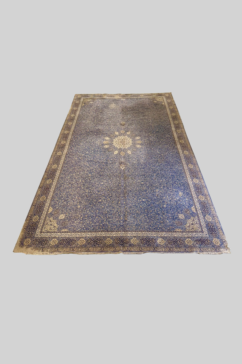 / 19’5″ x 11’8″ Blue & Cream Patterned Rug with Central Motif
