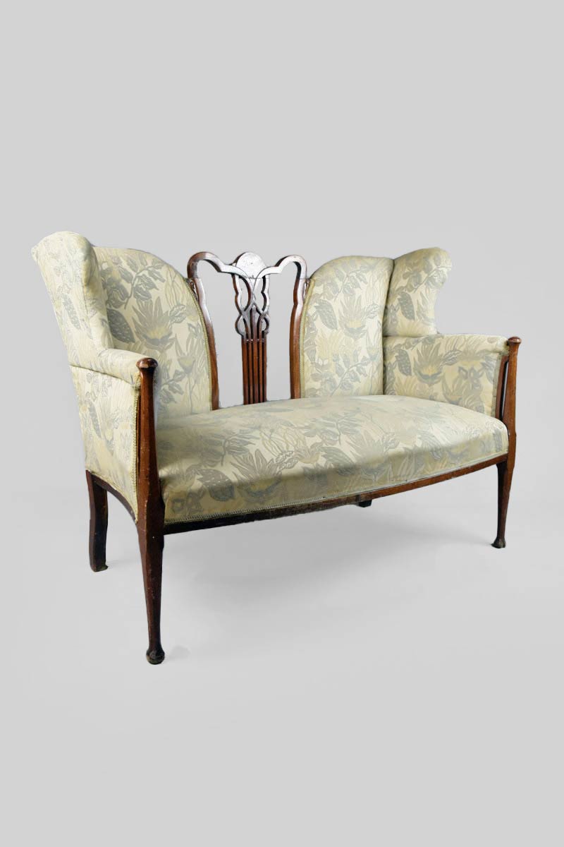 Art Nouveau 2 Seater Settee with Blue Green Floral Upholstery