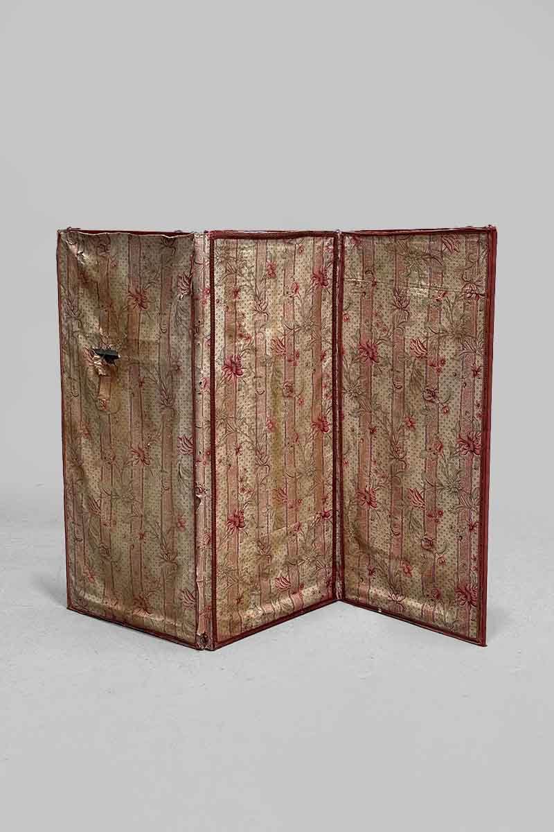 / Three Leaf Low Pink & White Floral Screen with Red Back (stained & worn)