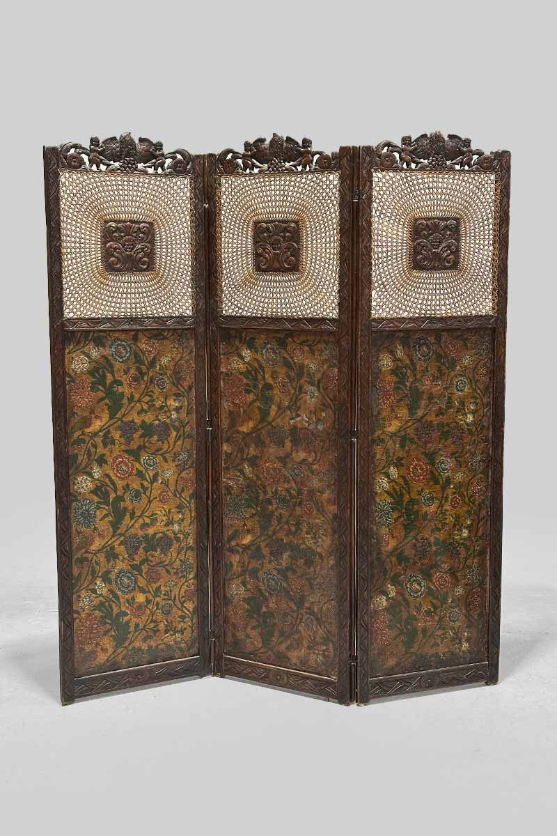 Three Leaf Screen Leather & Cane / Bergere Panels