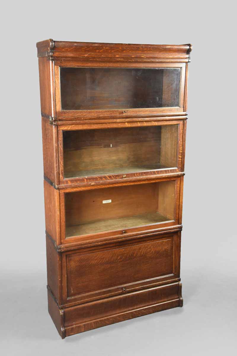 / Oak Globe Wernicke Sectional Bookcase with Three Glazed Doors & One Wood Panelled Door