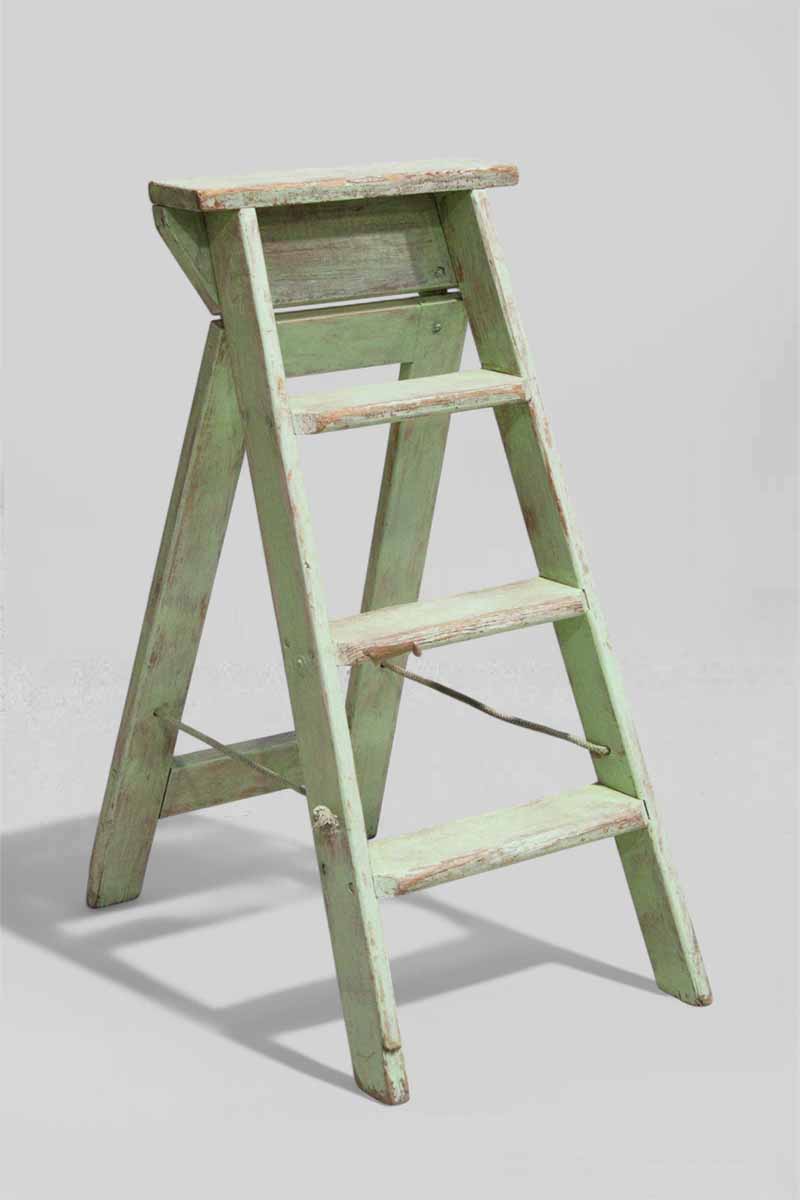 / 4 Tread Stepladder Green Painted Wooden