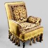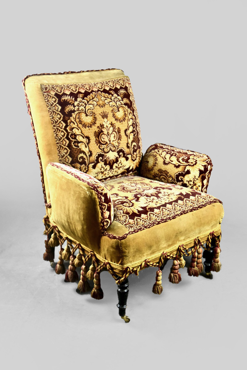 Armchair with Red & Gold Carpet Bag Fabric & Tasselled Base