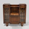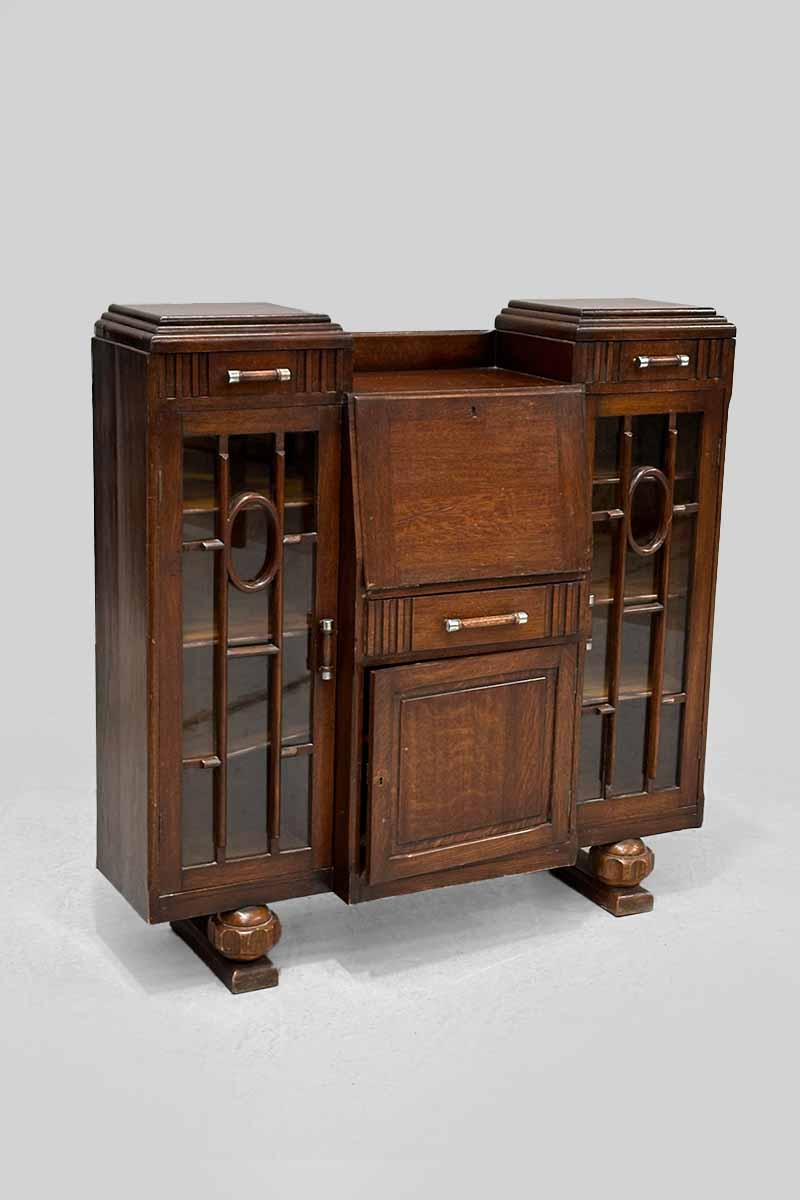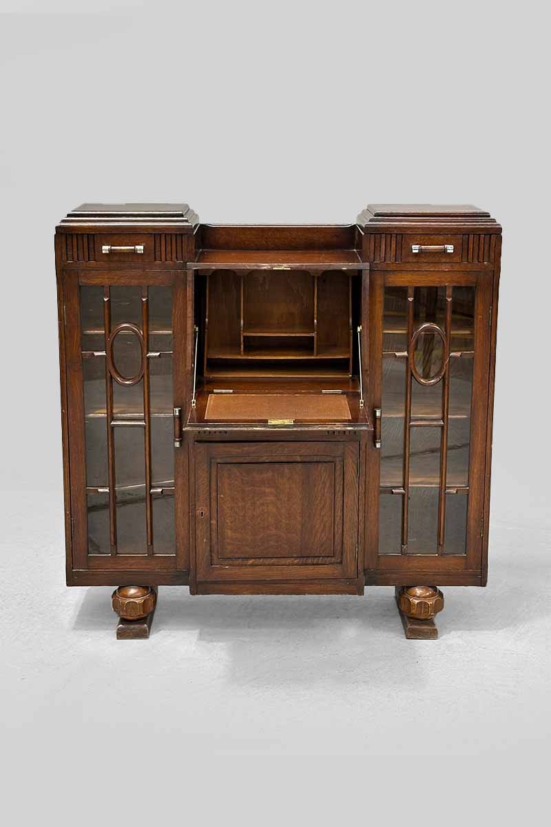 Art Deco Oak Display Cabinet / Bureau with 2 Glazed Doors