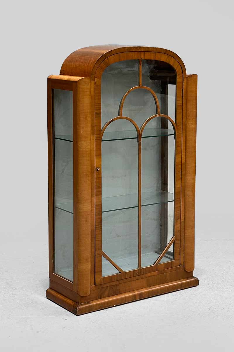 / Art Deco Walnut Glazed Display Cabinet or Bookcase