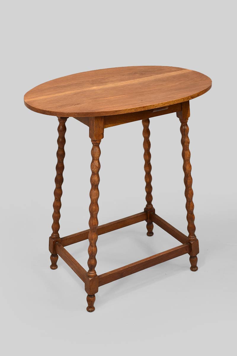 Arts & Crafts Light Oak Oval Occasional / Side Table with Bobbin Turned Legs