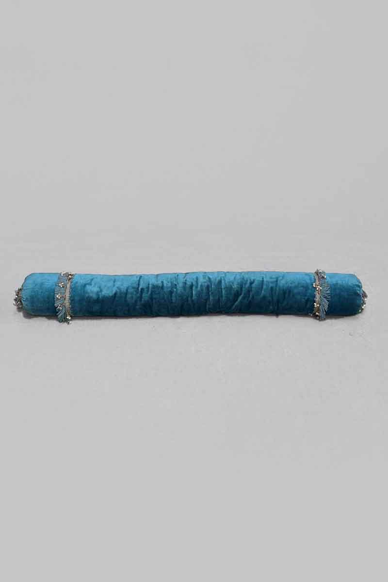 / Blue Velvet Bolster Cushion with Gold Trim
