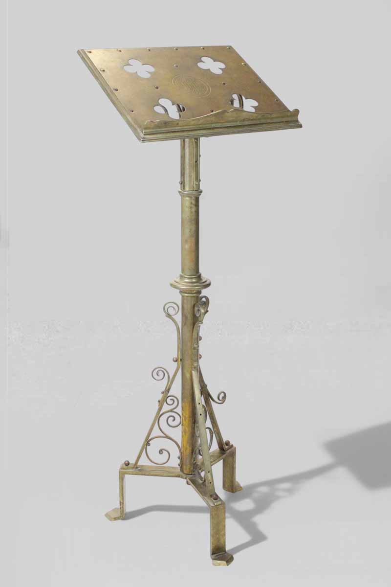 / Brass Floor Standing Lectern with Engraved & Cut Out Slope on Tripod Scroll Legs