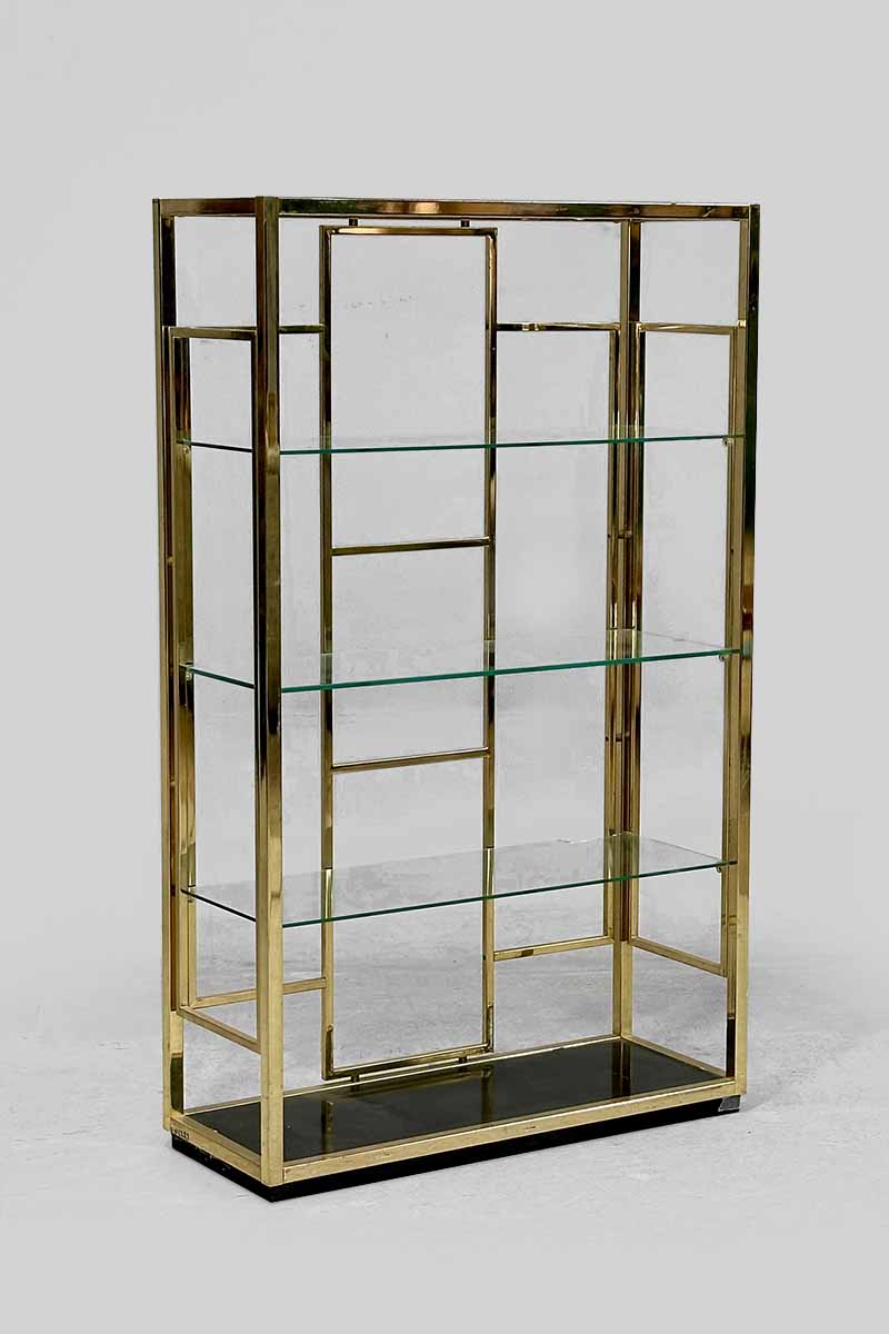 / Brass Open Shelf Unit or Display Cabinet with Glass Shelves