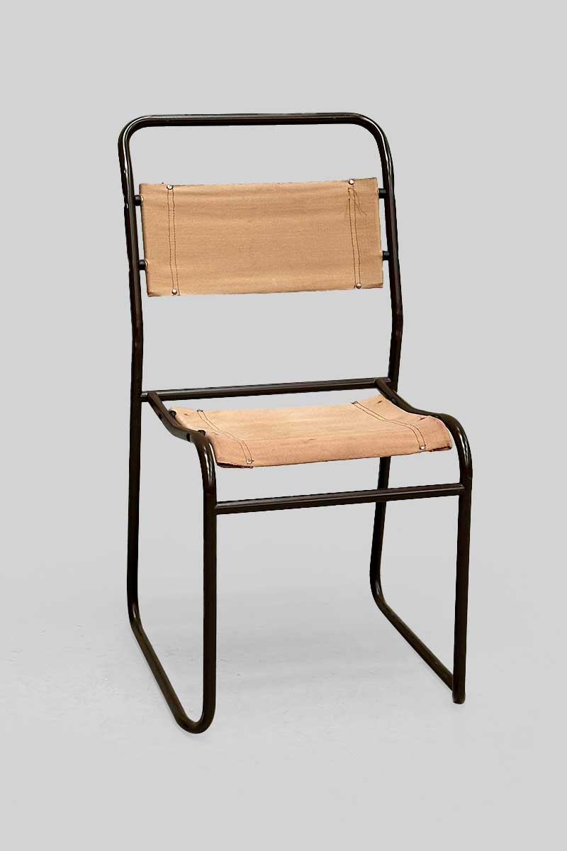 / Brown Metal Tubular Cantilever Stacking Chair with Canvas Material Seat & Back