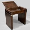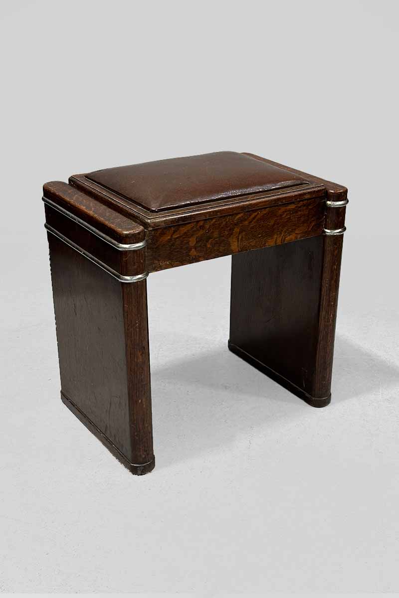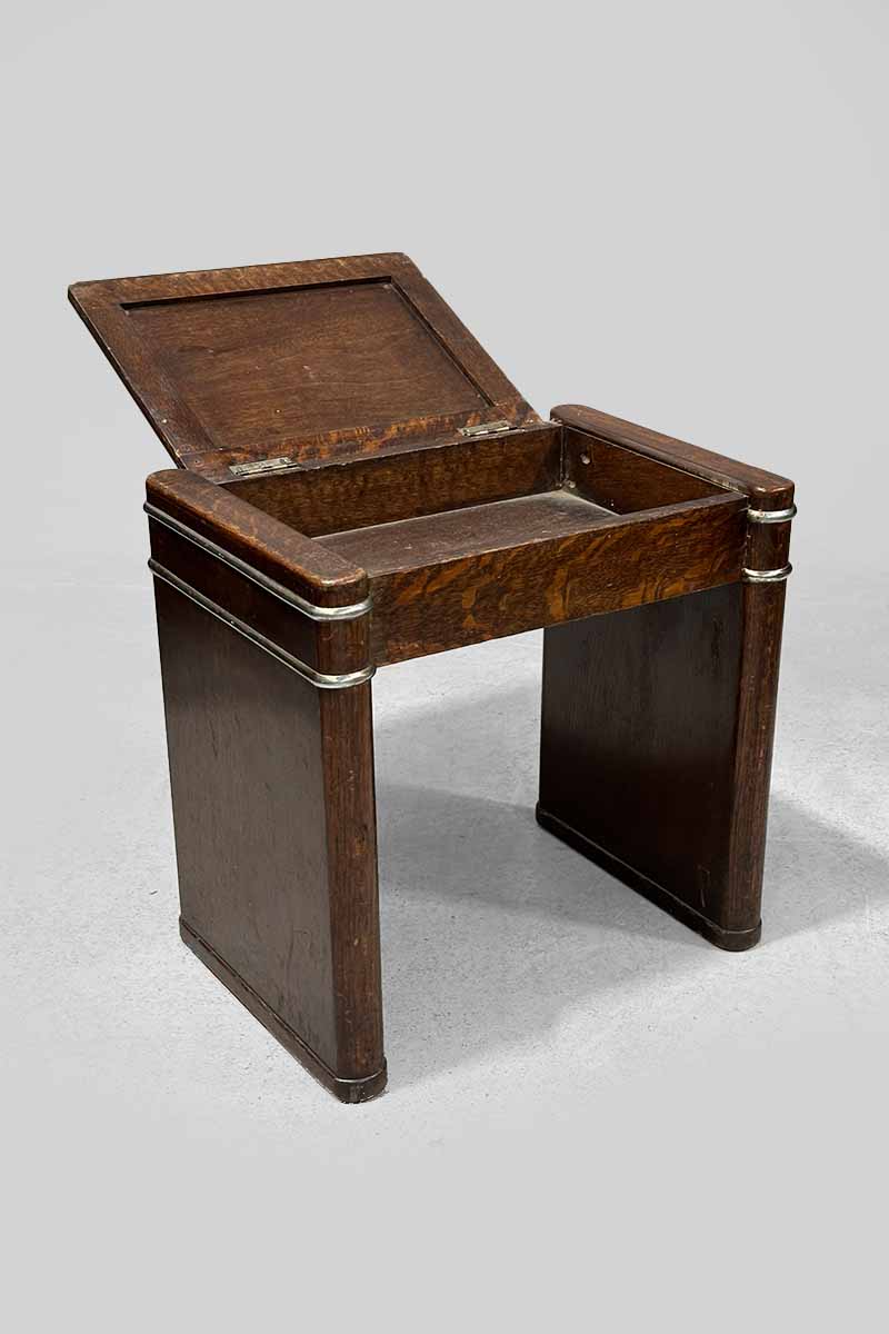Oak Music / Piano Stool with Brown Leatherette Hinged Seat Lid