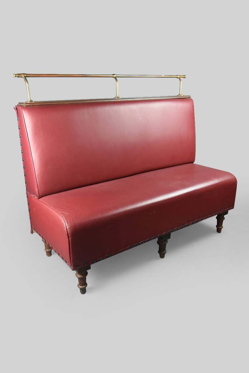 / Burgundy Leather Banquette Seat with Brass Rail On Backrest