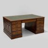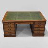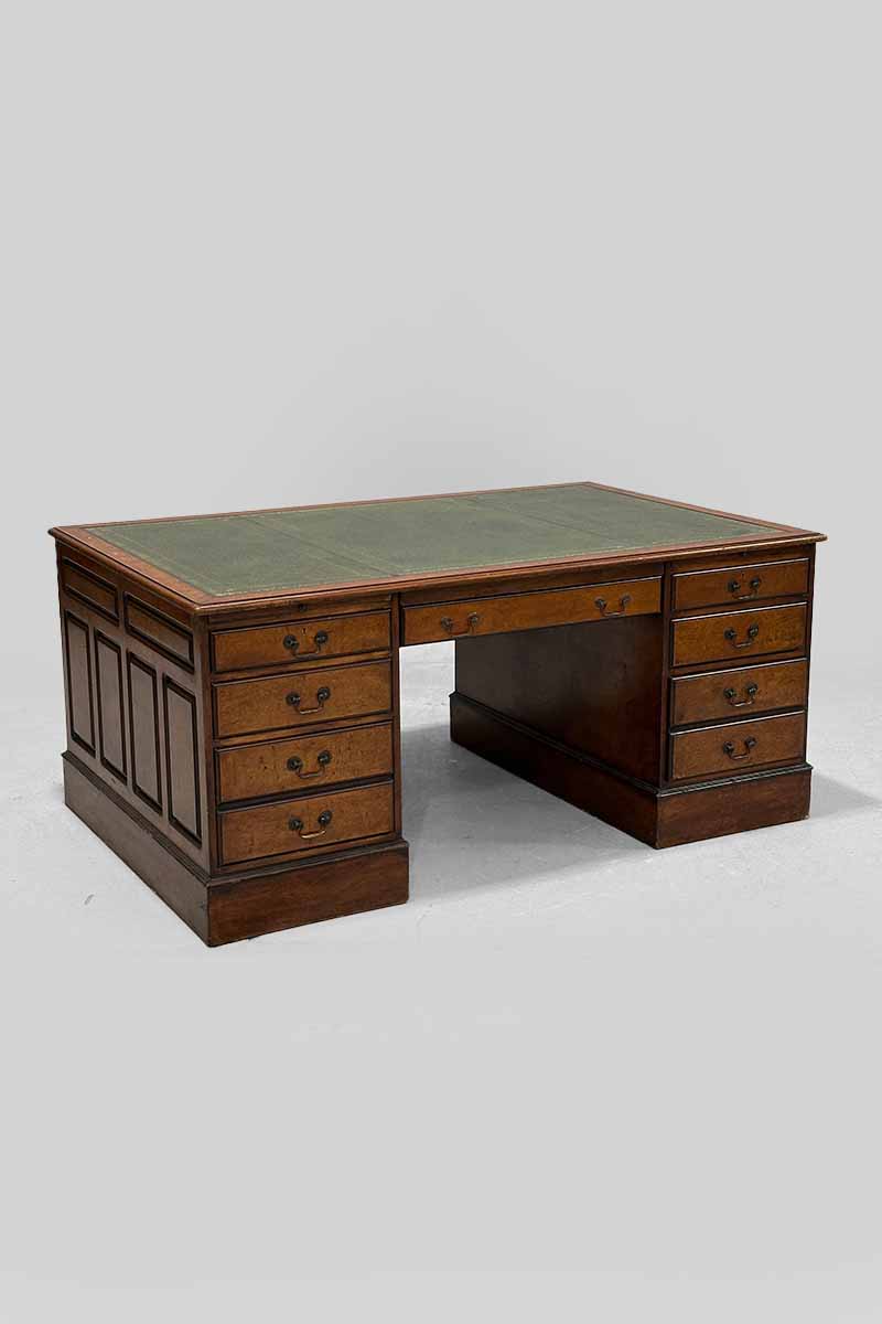 Burr & Walnut Pedestal Partners Multi Drawer Desk with Green Leather Top
