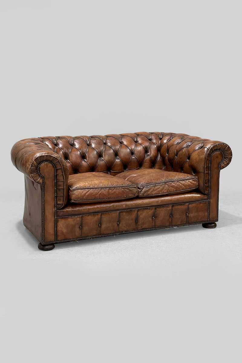 Brown Leather Button Back 2 Seater Chesterfield Sofa with 2 Loose Seat Cushions
