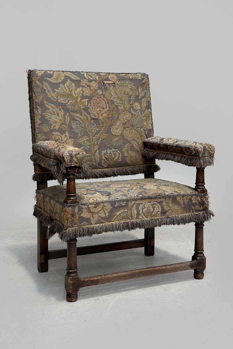 / Oak Armchair with Green & Blue Floral Upholstery