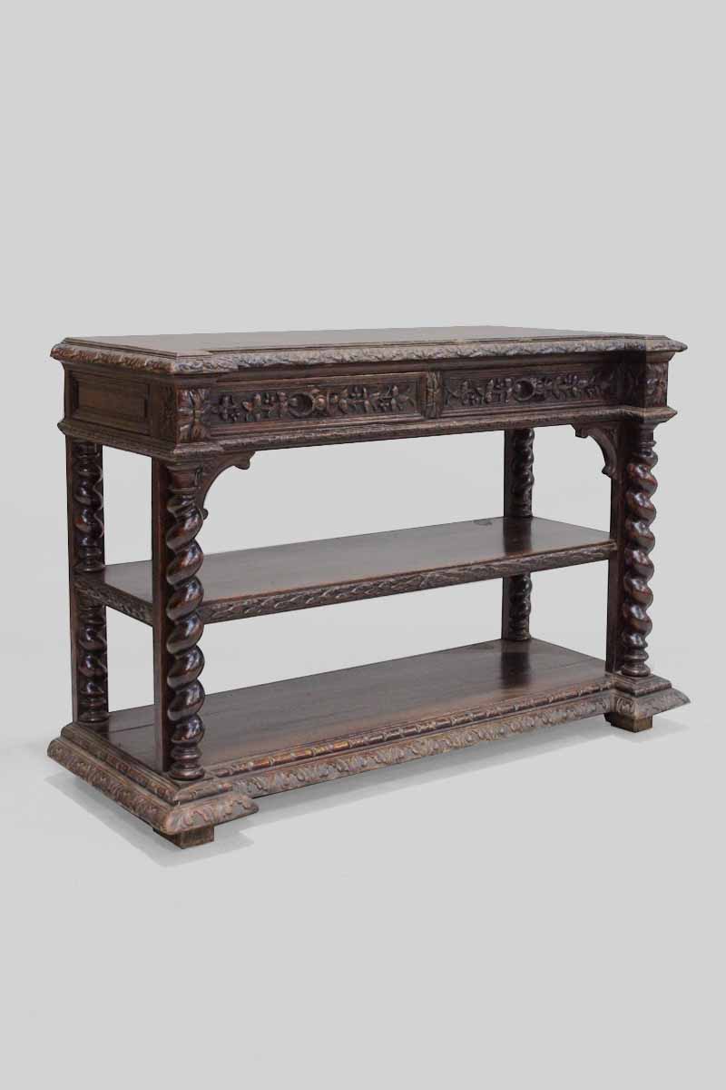 / Carved Oak 3 Tier Buffet / Serving Table
