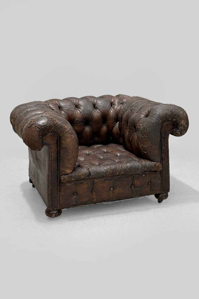 / Brown Leather Buttoned Chesterfield Club Chair (worn)