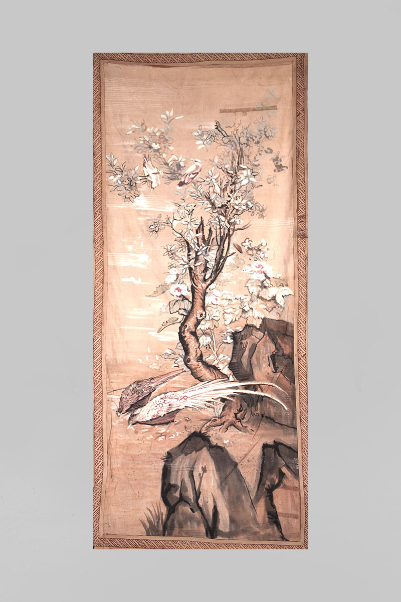 / Chinese Silk Painting – Rocks & A Tree 4′ x 9′ 6″