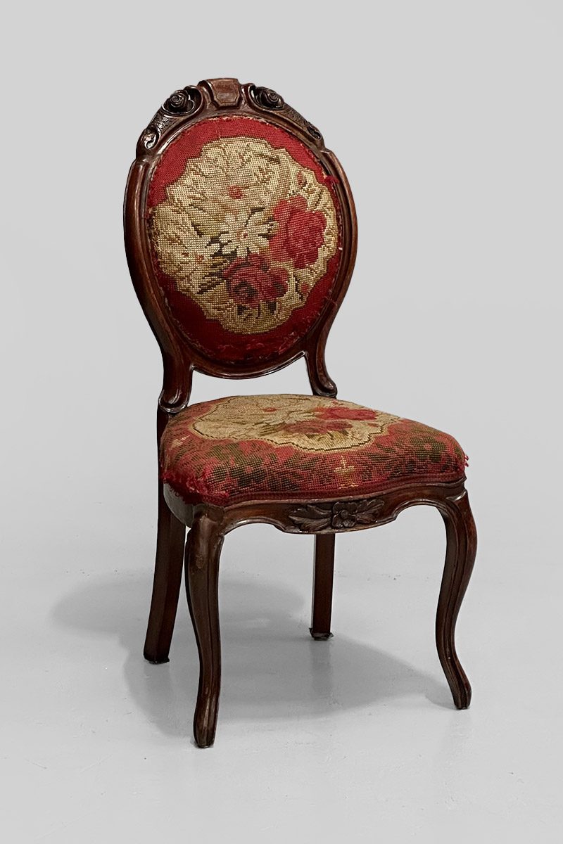 / Mahogany Dining or Occasional Chair with Red & Cream Tapestry Upholstery