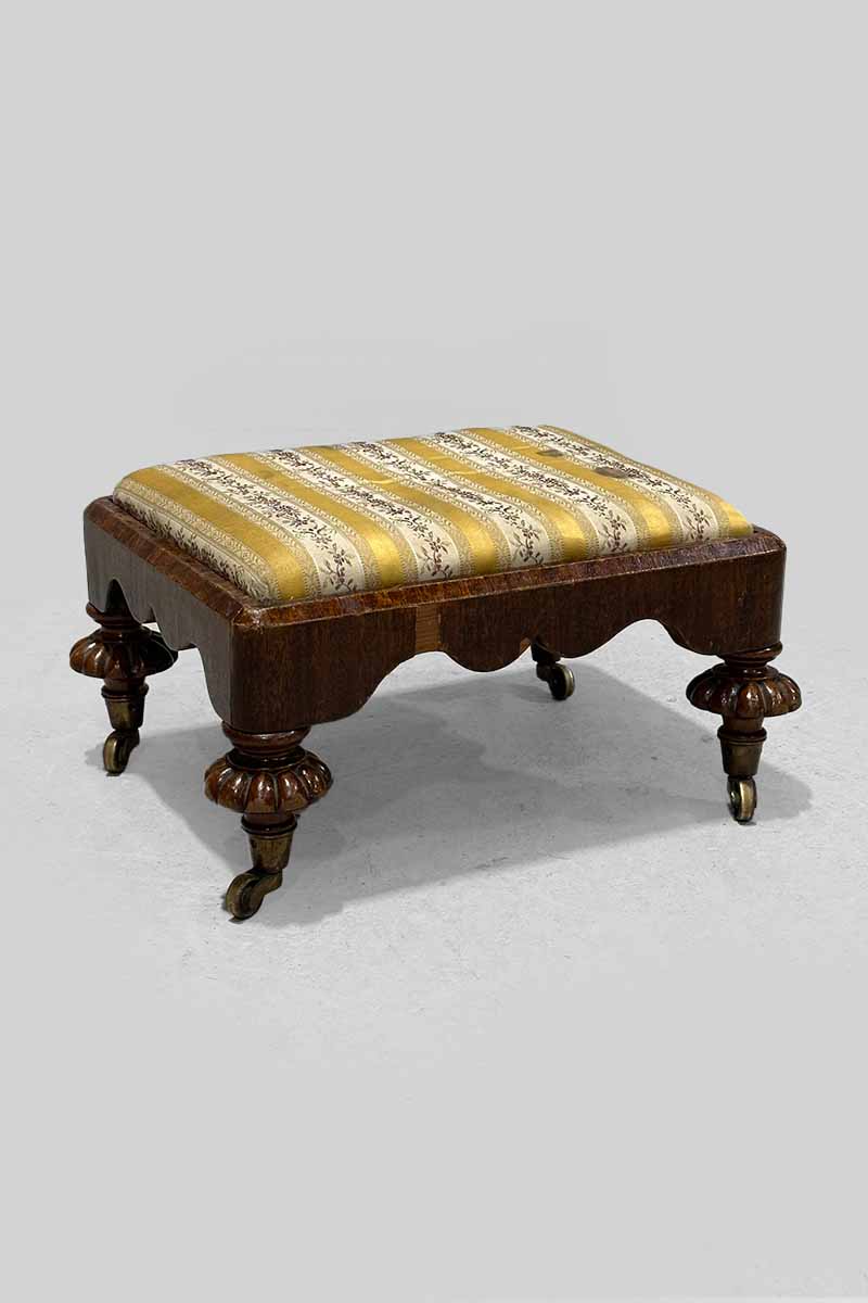 Cream & Gold Striped Stool on Bulbous Carved Legs with Castors