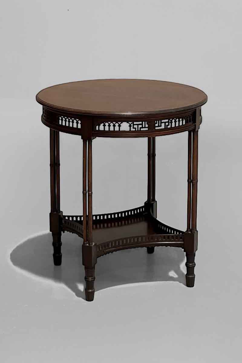 / Dark Continental Style Circular Side Table with Lower Shelf