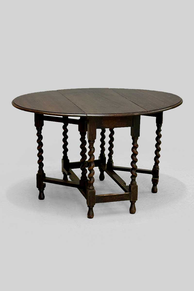 Dark Oak Pembroke Gateleg Folding Table with Barley Twist Legs