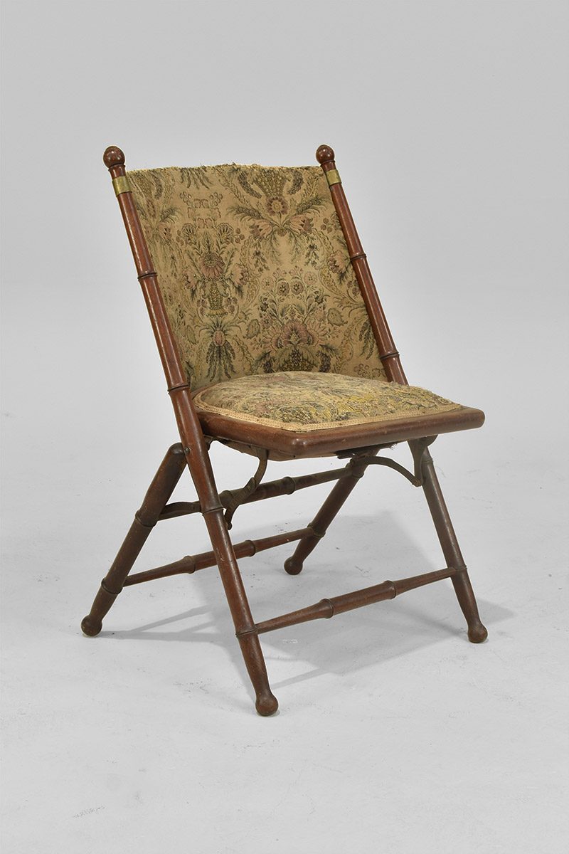 / Dark Wood Folding Chair with Floral Upholstered Seat & Back
