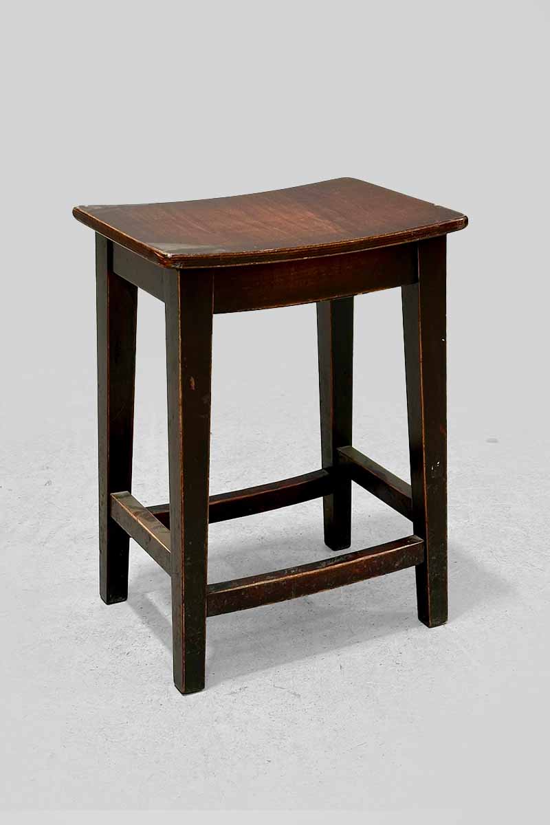 Stained Wooden Low Bar Stool with Curved Seat