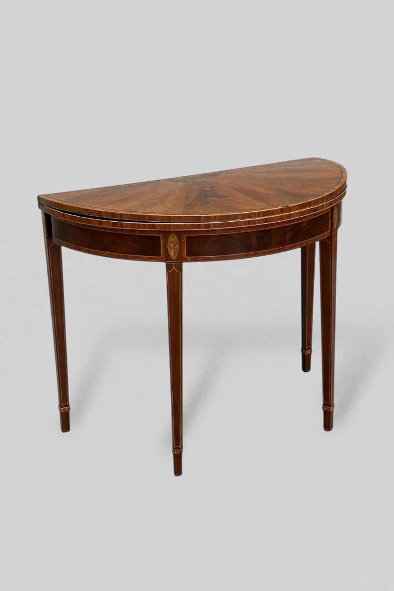 Demi Lune Regency Fold Over Card Table with Green Baize Interior