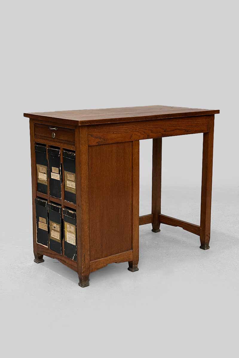Early 20th Century Oak Desk with Stationery Filing Unit & 6 Black Box Files