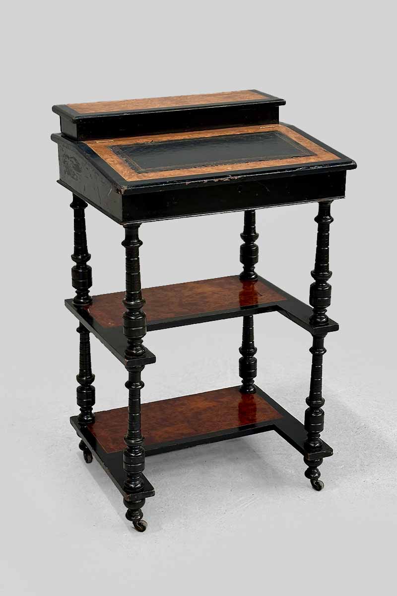 / Ebonized & Walnut Inlaid Davenport Desk