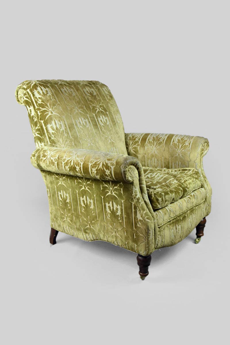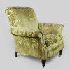 Edwardian Armchair with Green/Gold Floral Velvet Fabric