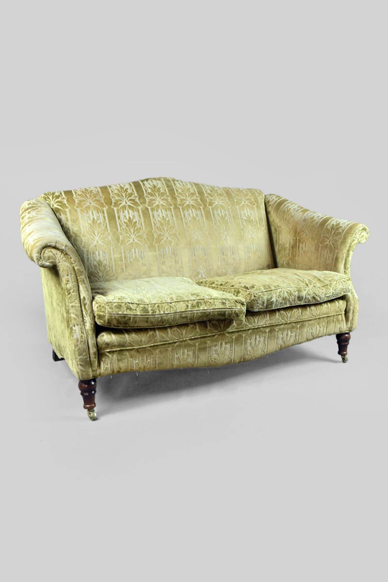 Edwardian Settee with Green/Gold Floral Velvet Fabric
