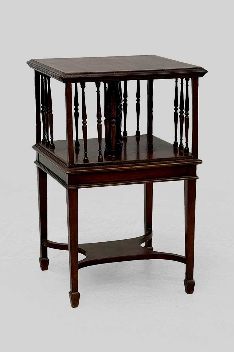 Low Square Mahogany Bookcase / Bookstand with Finials