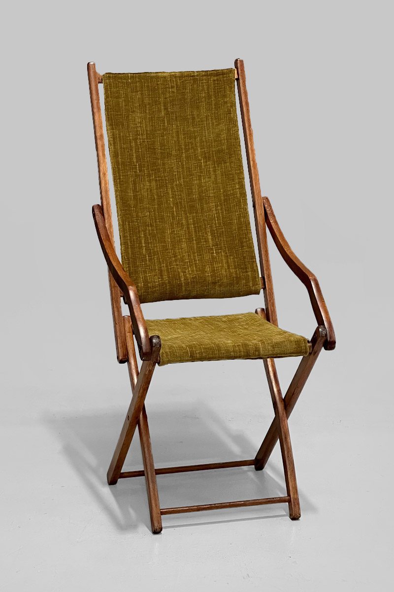 Folding Chair with Green Corduroy Like Fabric