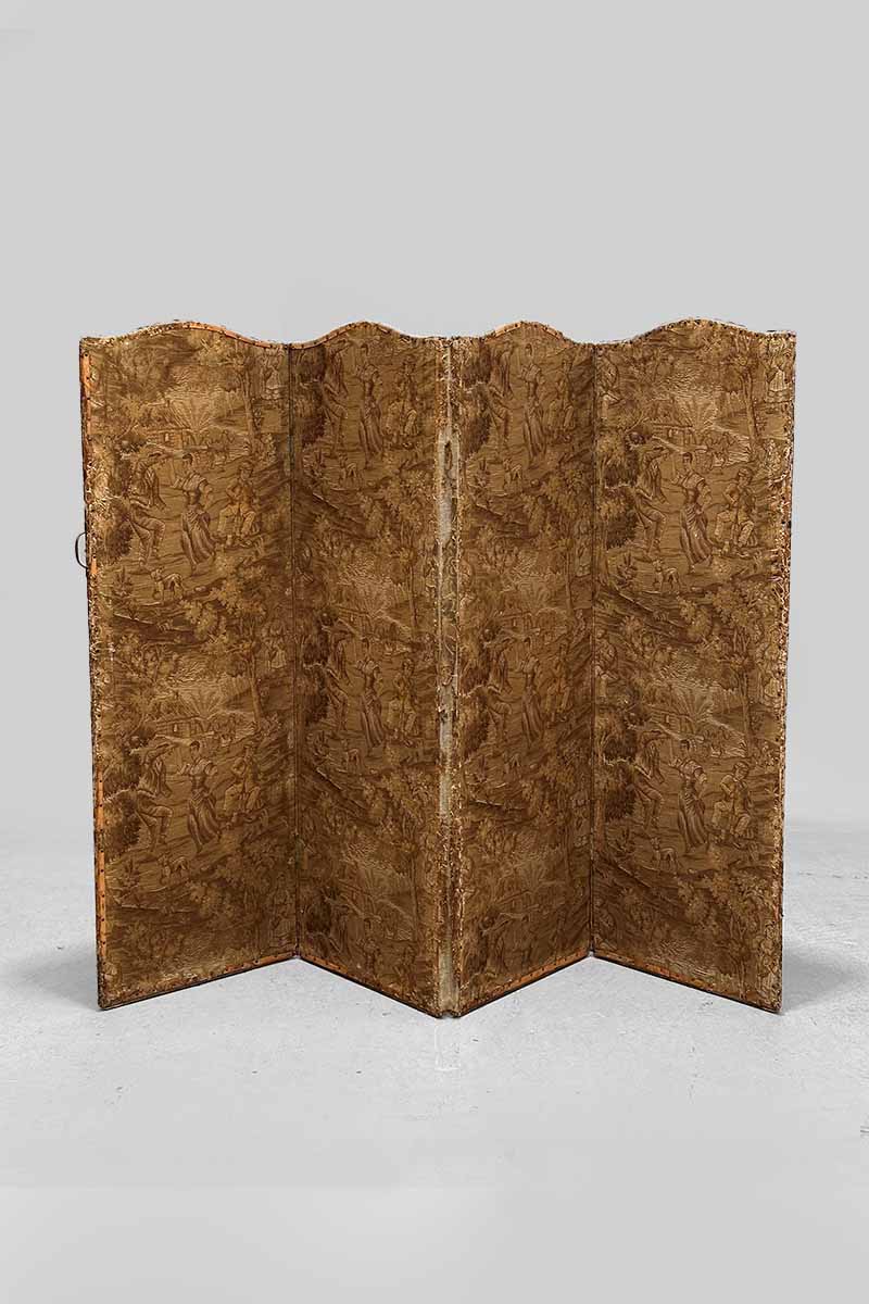 Four Leaf Tapestry Screen with a Scene of Gentlemen & Ladies Dancing
