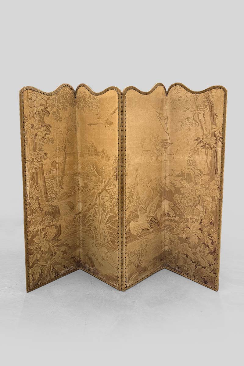 / Four Leaf Tapestry Screen with Wildlife Scenes & Scalloped Top Edge
