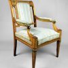 French Brass Mounted Armchair with Regency Style Pale Green / Cream Stripe Seat