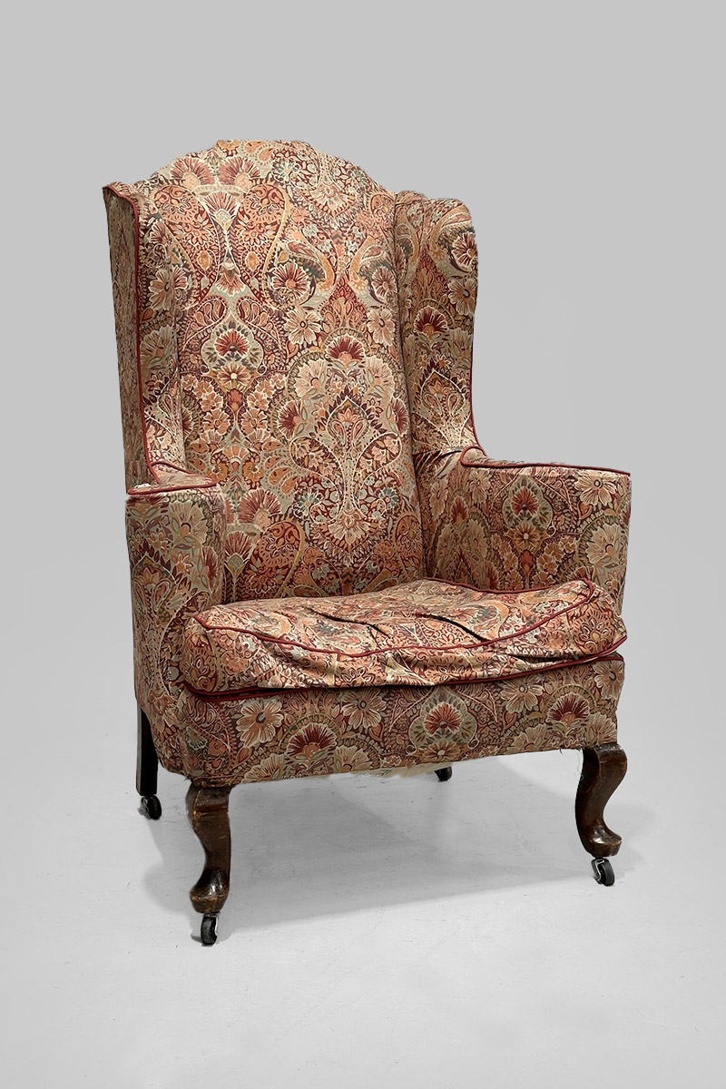 / Wing Back Armchair with Pink Floral Upholstery on Castors