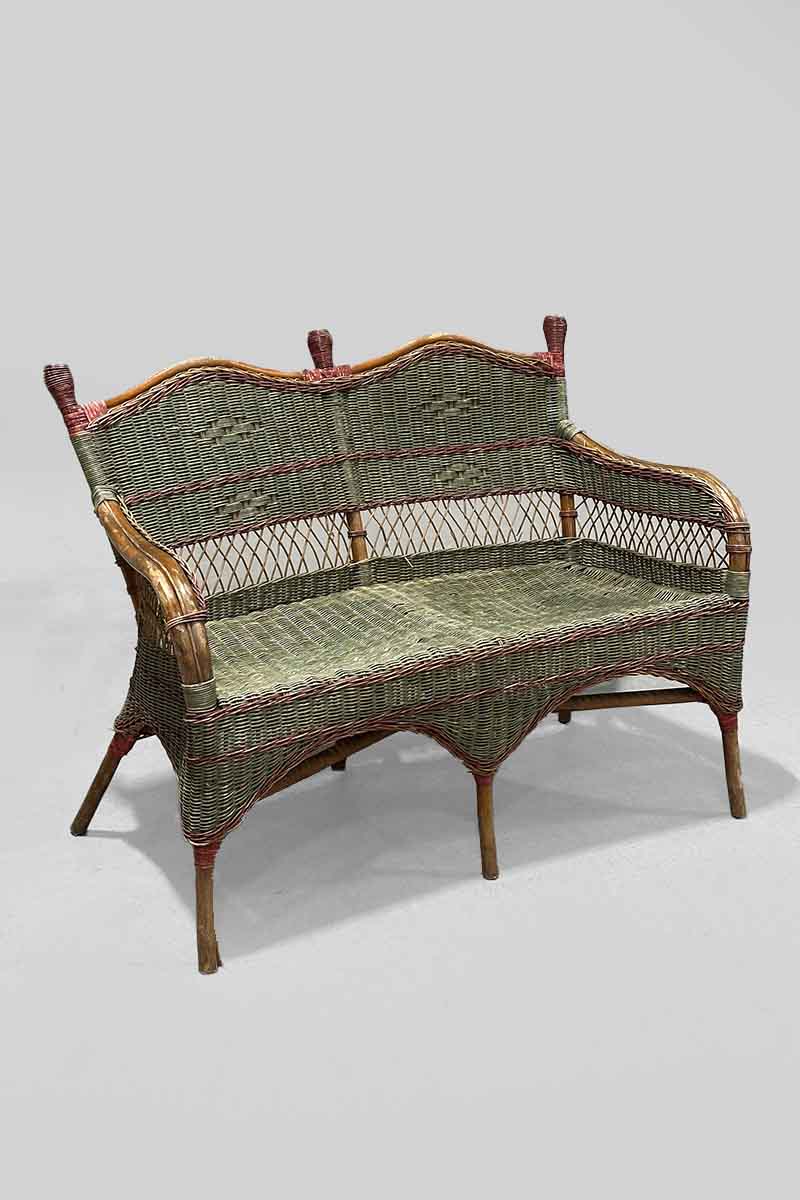 Green Woven Rattan 2 Seater Sofa