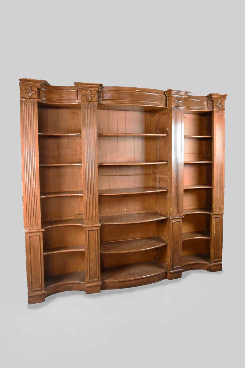 / Large Wood Grained Bow Front 3 Section Bookcase