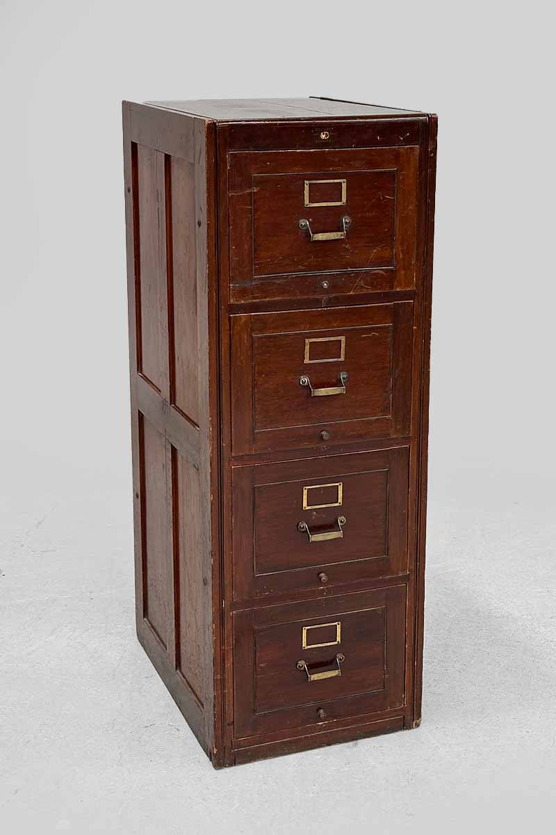 / Mahogany 4 Drawer Filing Cabinet with Brass Handles