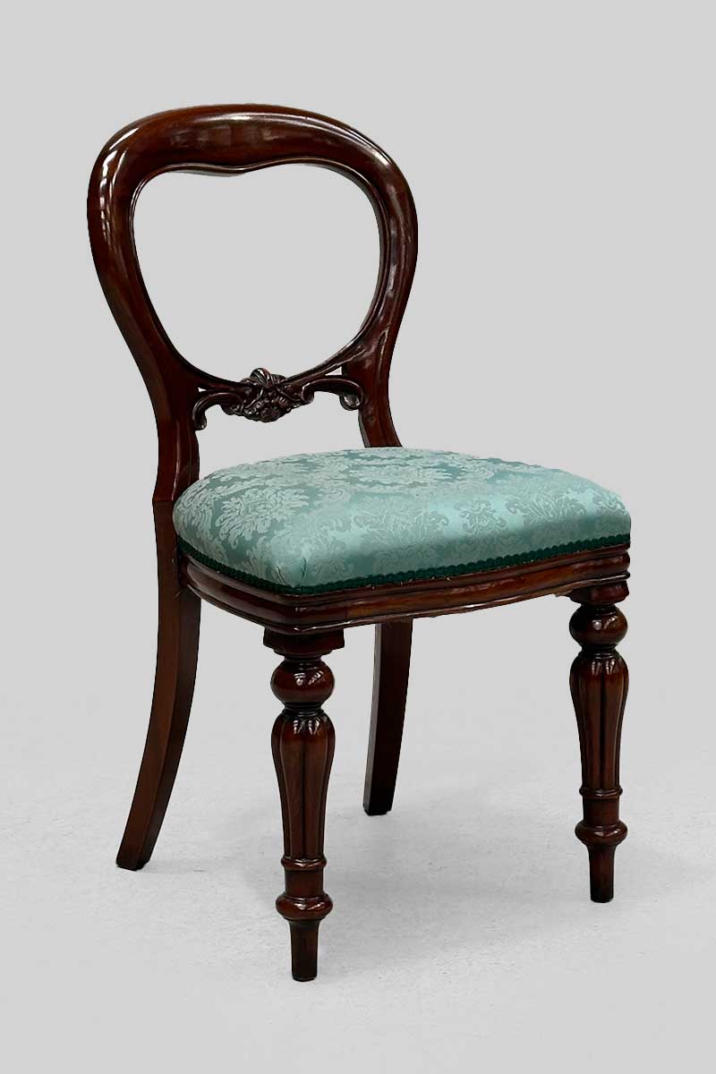 Mahogany Balloon Back Dining Chair with Teal Damask Upholstery