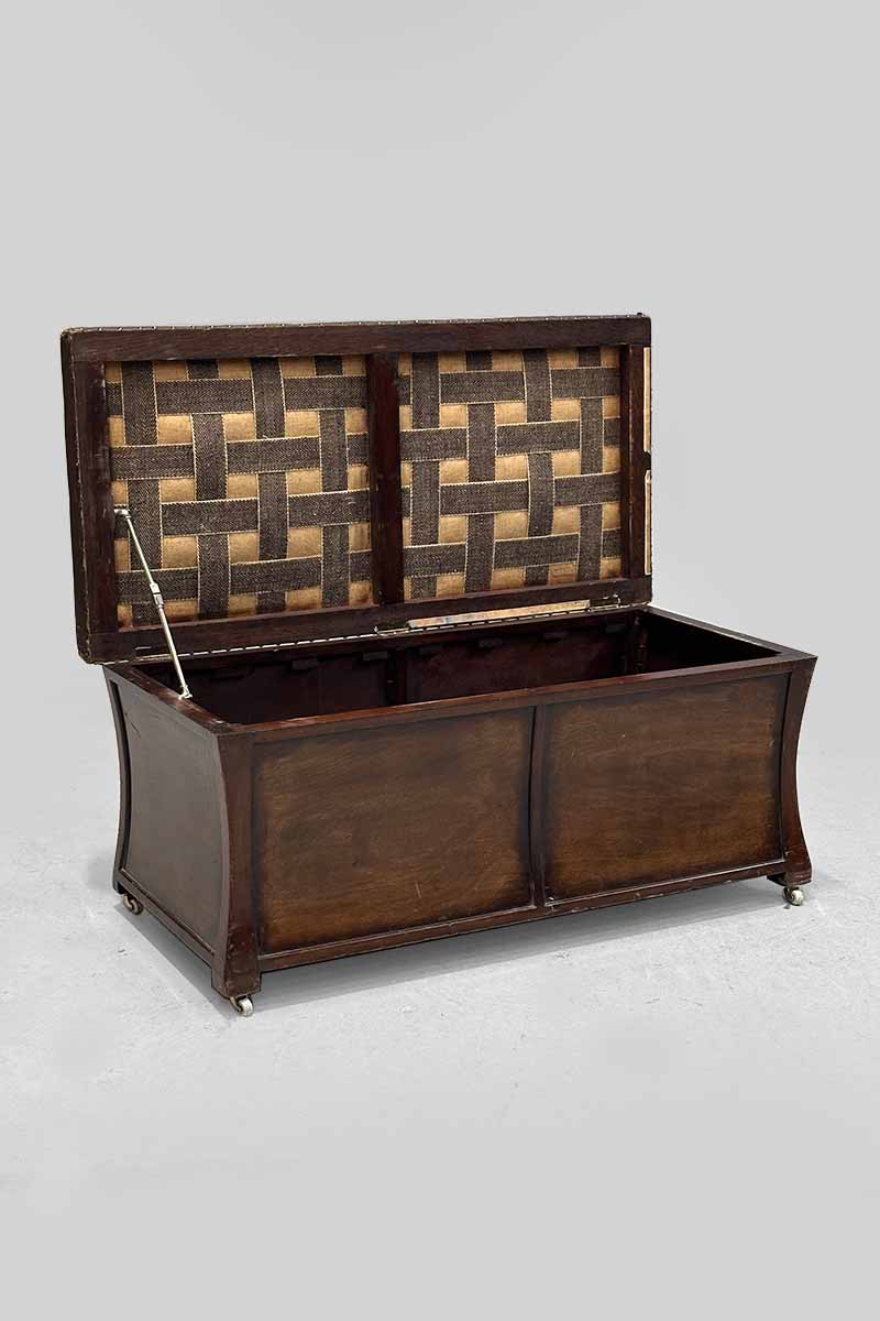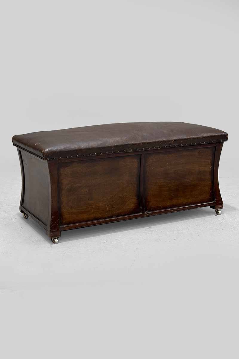 Mahogany Based Ottoman with Brown Leatherette & Hinged Seat Lid