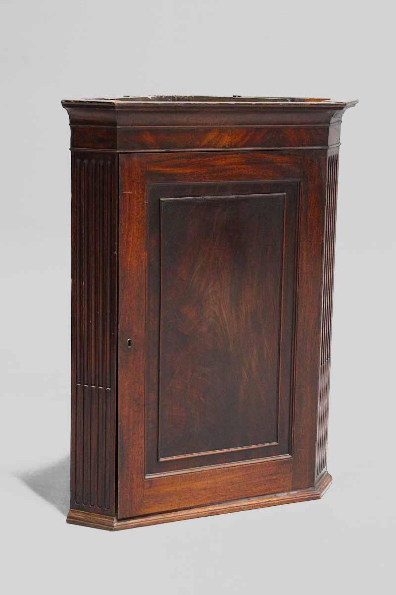 Mahogany Corner Cupboard with Panelled Front Door & Reeded Sides