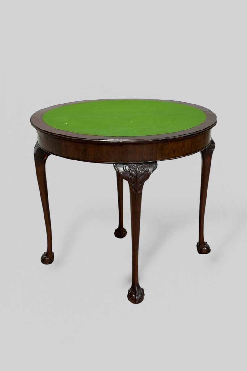 Mahogany Demi Loon Card Table with Carved Detail & Green Baize Interior