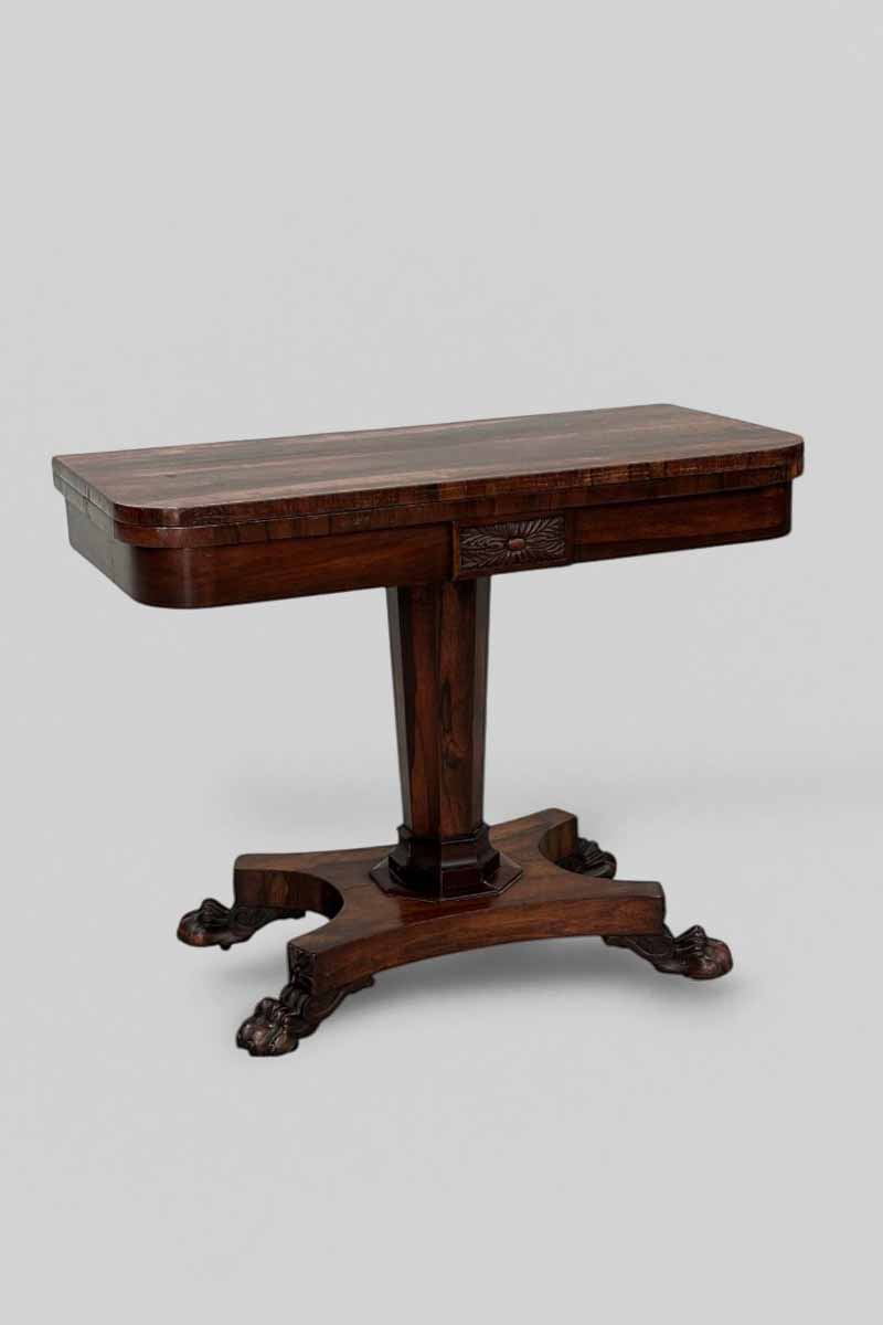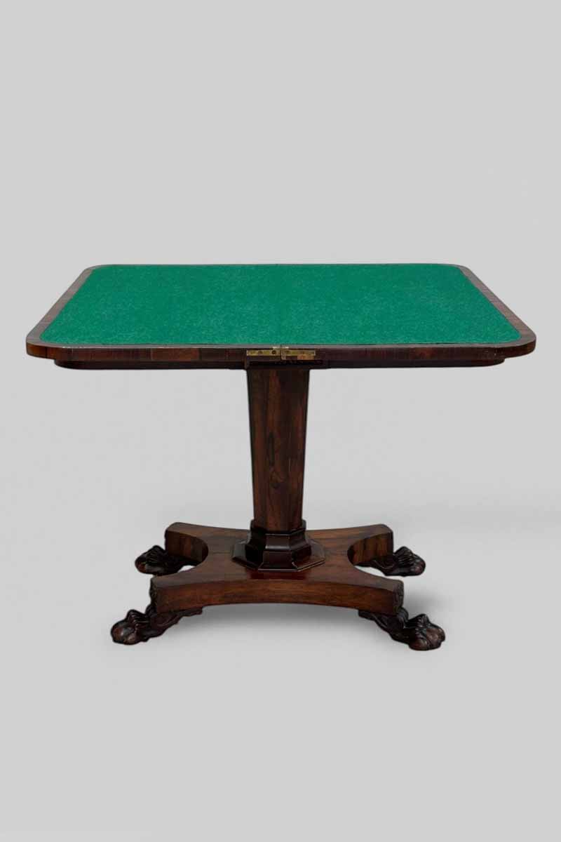 Mahogany Fold Over Card Table with Lion Paw Feet Green Baize Interior