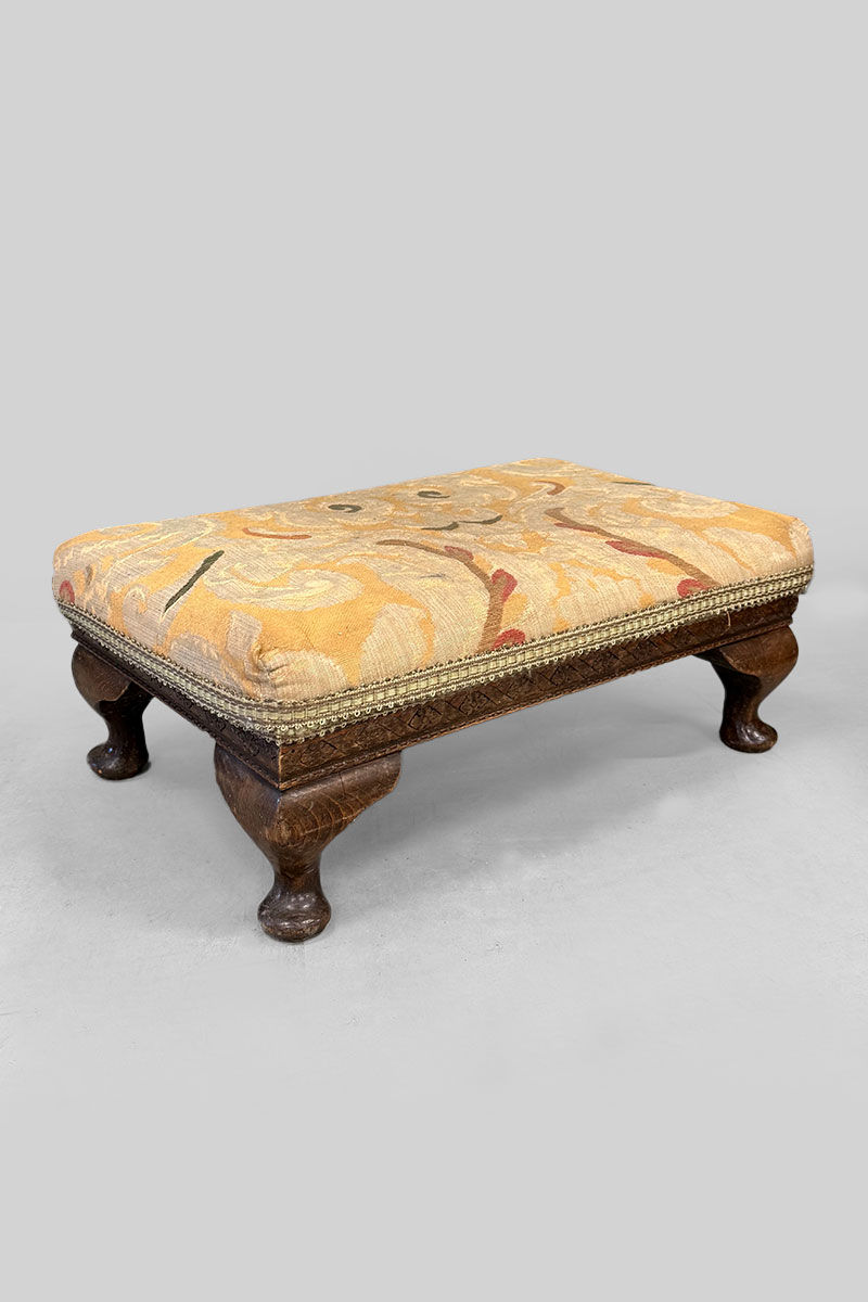 Mahogany Foot Stool with Gold, Cream & Rust Patterned Seat