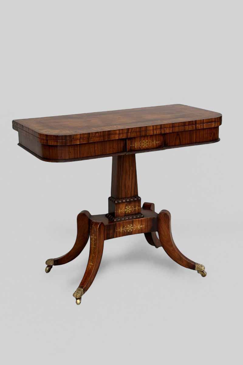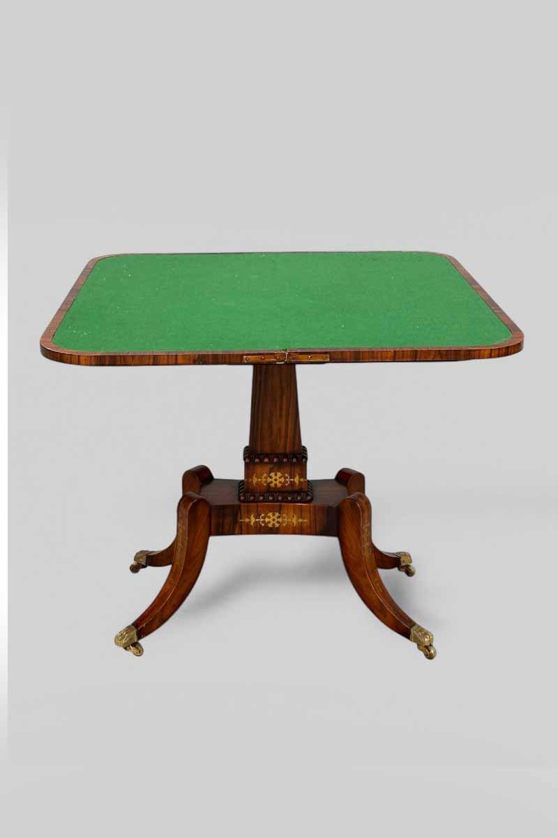 Mahogany & Gilt Inlaid Fold Out Card Table with Green Baize Lining